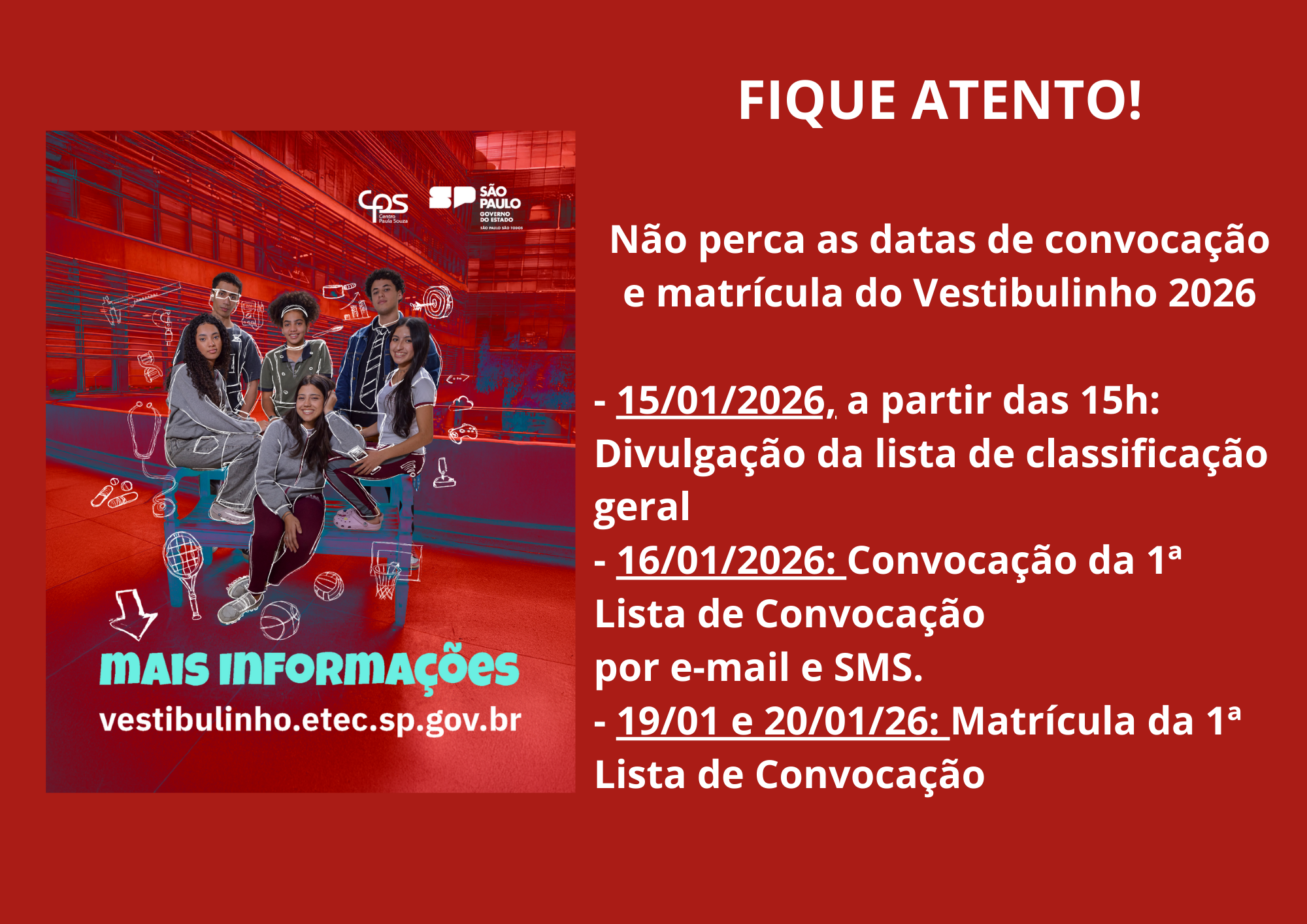 *19/01 e 20/01/26: Matrícula da 1ª Lista de Convocação dos candidatos com apresentação de